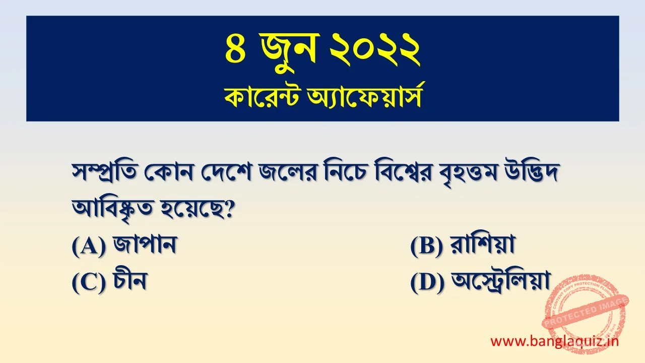 4th June Current Affairs Quiz 2022 – Bengali – কারেন্ট অ্যাফেয়ার্স